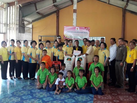 เพื่อโครงการอาหารกลางวันสำหรับนักเรียน ให้กับโรงเรียนประถมศึกษาในพื้นที่อำเภอดอนเจดีย์ จำนวน 3 โรงเรียน ได้แก่ โรงเรียนบ้านห้วยม้าลอย หมู่ที่ 4 ตำบลหนองสาหร่าย โรงเรียนวัดราษฎรบำรุง หมู่ที่ 1 ตำบลดอนเจดีย์ และโรงเรียนวัดธัญญวารี หมู่ที่ 8 ตำบลไร่รถ