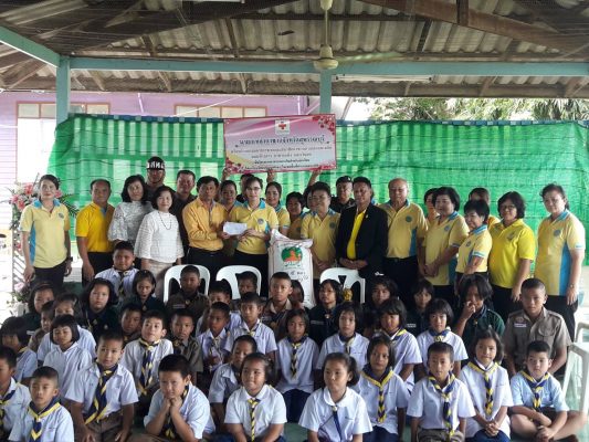 นางจุฬารัตน์ วันไชยธนวงศ์ นายกเหล่ากาชาดจังหวัดสุพรรณบุรี พร้อมด้วยคณะกรรมการ สมาชิกเหล่ากาชาดจังหวัดสุพรรณบุรี และสมาชิกเหล่ากาชาดอำเภอดอนเจดีย์ ร่วมกับ นายกิติพงษ์ แย้มมี นายอำเภอดอนเจดีย์ และหัวหน้าส่วนราชการได้มอบข้าวสาร จำนวน 5 กระสอบ ไข่ 12 แผง น้ำมันพืช 12 ขวด และเงินสด
