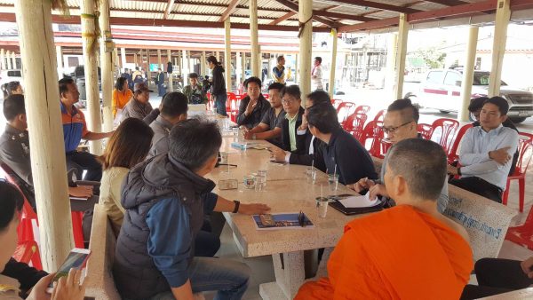 โดยตอนสายวันเดียวกัน ที่วัดไทยาวาส เจ้าอาวาส พร้อมด้วย นายสุพจน์ ยศสิงห์คำ รอง ผวจ.นครปฐม นายอำเภอนครชัยศรี ทหารส่วนดูแลพื้นทึ่ อ.นครชัยศรี ผอ.กรมเจ้าท่านครปฐม ตัวแทน บริษัท ทะเลไทย จำกัด เจ้าของโป๊ะเรือ บริษัทประกันภัย บริษัท น้ำมันพืชไทย จำกัด พูดแทน ส่วนท้องถิ่น ตำบลไทยาวาส ร่วม ตรวจดูพื้นที่ความเสียหายเบื้องต้น พร้อม เจรจาชดใช้ค่าเสียหาย การบรรเทาความเดือดร้อนของพี่น้องประชาชน การป้องกันเหตุซ้ำซ้อน ในเบื้องต้น ลงความเห็นร่วมกันว่า ในส่วนความเสียหายและความมั่นคงของสะพาน ต้องรอให้ด้านวิศวกรรมโยธาและส่วนเกี่ยวข้องมาร่วมตรวจสอบว่า สะพานที่ส่วนพื้นพังร่วงหลุดจากคานสามารถซ่อม หรือทำเสริมกับเสาตอม่อเดิมได้หรือไม่ หากทำไม่ได้จะต้องรื้อแล้วสร้างสะพานใหม่ขึ้นมา หากในส่วนของการชดเชยของประกันภัยชดเชยมาเท่าใดนั้น ส่วนที่เหลือทางบริษัทน้ำมันพืช และส่วน บริษัทเจ้าของเรือ จะ สมทบ ยอดส่วนที่เหลือ เพื่อดำเนินการให้จนแล้วเสร็จเพื่อให้ประชาชนสามารถใช้สะพานข้าม แม่น้ำท่าจีนจุดเดิมใช้งานได้ตามปกติ ซึ่งตรงนี้คงจะต้องใช้ระยะเวลาพอสมควร