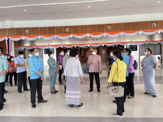 นายสุทธิพงษ์ จุลเจริญ ปลัดกระทรวงมหาดไทย พร้อมด้วย ดร.วันดี กุญชรยาคง จุลเจริญ ประธานสภาสตรีแห่งชาติฯ เดินทางลงพื้นที่จังหวัดสงขลา เพื่อตรวจติดตามความคืบหน้าการเตรียมความพร้อมในการรับเสด็จสมเด็จพระเจ้าลูกเธอ เจ้าฟ้าสิริวัณณวรี นารีรัตนราชกัญญา เสด็จทอดพระเนตรนิทรรศการและการจัดงานแสดงผลิตภัณฑ์ผ้าไทยและงานหัตถกรรมชุมชนภาคใต้ ในวันเสาร์ที่ 19 กุมภาพันธ์ 2565 เพื่อให้การดำเนินงานเป็นไปด้วยความเรียบร้อยและสมพระเกียรติ โดยมี นายเจษฎา จิตรัตน์ ผู้ว่าราชการจังหวัดสงขลา นางดาเรศ จิต รัตน์ นายกเหล่ากาชาดจังหวัดสงขลา/ประธานแม่บ้านมหาดไทยจังหวัดสงขลา นายอำพล พงศ์สุวรรณ รองผู้ว่าราชการจังหวัดสงขลานายจรัญ อินทสระ พัฒนาการจังหวัดสงขลา และผู้อำนวยการกลุ่มงานทุกกลุ่มงาน ร่วมให้การต้อนรับและนำเรียนรายละเอียดการเตรียมรับเสด็จสมเด็จพระเจ้าลูกเธอ เจ้าฟ้าสิริวัณณวรี นารีรัตนราชกัญญา เป็นไปด้วยความความเรียบร้อย