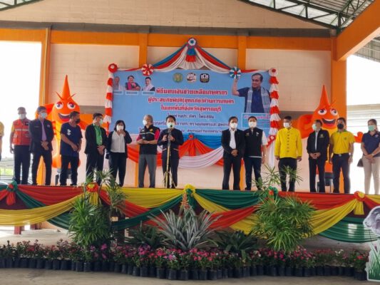 โดยมี นายณัฐภัทร สุวรรณประทีป ผู้ว่าราชการจังหวัดสุพรรณบุรี อธิบดีกรมประมง นายณัฐวุฒิประเสริฐสุวรรณ นายสรชัด สุจิตต์ สส.สุพรรณบุรี และหัวหน้าส่วนราชการที่เกี่ยวข้อง เข้าร่วมพิธี เพื่อส่งกำลังใจให้กับเกษตรกรที่ประสบภัยพิบัติ ซึ่งภาครัฐให้ความช่วยเหลือตามระเบียบกระทรวงการคลังฯ รวมถึงหลักเกณฑ์วิธีปฏิบัติปลีกย่อยเกี่ยวกับการให้ความช่วยเหลือด้านการเกษตรผู้ประสบภัยพิบัติกรณีฉุกเฉิน ดังนั้นจึงเป็นหน้าที่ของเกษตรกรทุกท่านที่จะต้องปฏิบัติตามระเบียบและหลักเกณฑ์ ที่กำหนดให้ถูกต้องร่วมกับเจ้าหน้าที่ด้วย ประการที่สำคัญ คือ การขึ้นทะเบียนเกษตรกร และแจ้งข้อมูลการปลูกพืช การเลี้ยงปลา กุ้ง หรือสัตว์ต่างๆ ให้เป็นไปตามจริงในปัจจุบัน ซึ่งกระทรวงเกษตรและสหกรณ์มีเจ้าหน้าที่ปฏิบัติงานถึงระดับตำบลให้บริการ จึงขอให้เกษตรกรทุกท่านให้ความร่วมมือและติดตามข่าวสารการปฏิบัติงานจากเจ้าหน้าที่ หรือ ผู้นำชุมชน อาสาสมัคร ในพื้นที่ด้วย