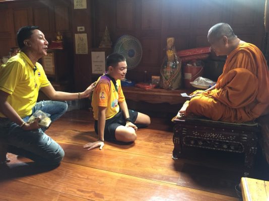 ซึ่งทีมตะกร้อฯ จะเดินทางในวันที่ 19 กรกฎาคม นี้ จึงนำทีมนักกีฬา ฯ และโค้ช ฯ กราบขอพรสมเด็จพระนเรศวรมหาราช ณ บริเวณพระบรมราชานุสรณ์ ดอนเจดีย์ และกราบขอพร หลวงพ่อโบ้ย วัดมะนาว อ.บางปลาม้า จ.สุพรรณบุรี เพื่อความเป็นสิริมงคล โดย พระครูสิริวรธรรมาภินันท์ เจ้าอาวาสวัดมะนาว ได้มอบวัตถุมงคลหลวงพ่อโบ้ย ยุคพิมพ์สมเด็จกลางหลังปรกใบมะขาม และ เหรียญสมเด็จพระนเรศวรทรงอาชาศึก แก่ทีมนักกีฬา ฯ และโค้ช ฯ เพื่อสร้างขวัญกำลังใจ ในการสู้ศึกที่มาเลเชียในครั้งนี้พร้อมนำ 3 เหรียญทองกลับมาให้คนไทยภาคภูมิใจ