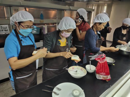 วันที่ 24 มีนาคม 2565 นางสาวกมลชนก สวัสดี นักจัดการงานทั่วไป พร้อมด้วยเจ้าหน้าที่สำนักงานสภาเกษตรกรจังหวัดนครปฐม ร่วมกับโครงการจัดตั้ง ภาควิชานวัตกรรมอาหารปลอดภัย คณะเกษตรกำแพงแสน มหาวิทยาลัยเกษตรศาสตร์ ในการจัดโครงการนวัตกรรมการแปรรูปนมแพะไร้กลิ่น โดย ผศ.ดร.ศศิธร นาคทอง อาจารย์ประจำ โครงการจัดตั้งภาควิชานวัตกรรมอาหารปลอดภัย คณะเกษตร กำแพงแสนม.เกษตรศาสตร์ และ ทีมนักวิจัย เป็นวิทยากรบรรยายและสอนการปฏิบัติการแปรรูปนมแพะเป็นชีส (มอสซาเรลล่า) และเนยเหลวสดจากนมแพะ ณ ห้องปฏิบัติการแปรรูปโครงการจัดตั้งภาควิชานวัตกรรมอาหารปลอดภัย คณะเกษตร กำแพงแสนมหาวิทยาลัยเกษตรศาสตร์ เป้าหมายเกษตรกรจำนวน 20 ราย