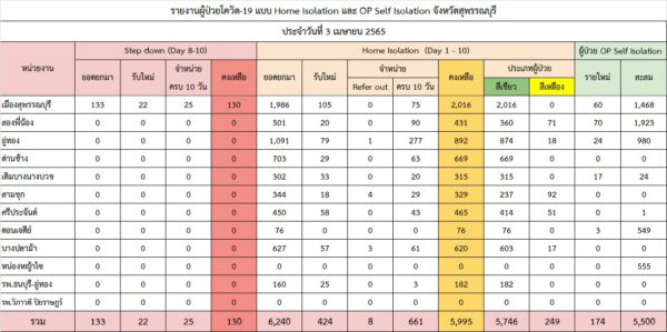 ทั้งนี้ เฉพาะโรงพยาบาลสนาม 8 แห่ง Ci 6 แห่ง รวมมีเตียงรับผู้ป่วยทั้งหมด 801 เตียง มีผู้ป่วยเข้าทำการรักษา 1,068 คน ใช้มีเตียงเสริม 267 เตียง /มีผู้เข้ารับการรักษาระบบ Home Isolation จำนวน 6,240 คน และมีผู้เข้ารับการรักษาระบบ Self Isolation จำนวน 5,326 คน