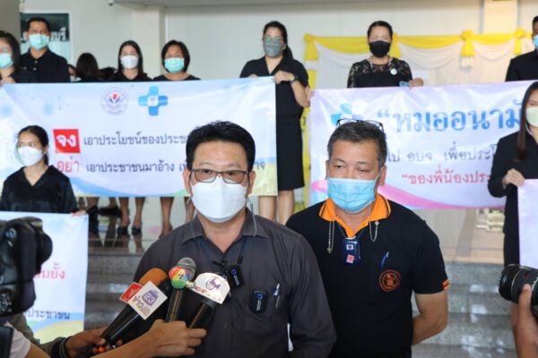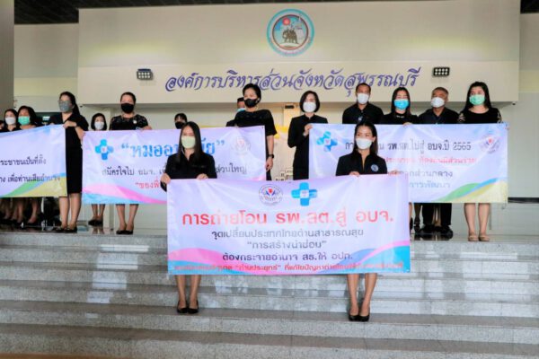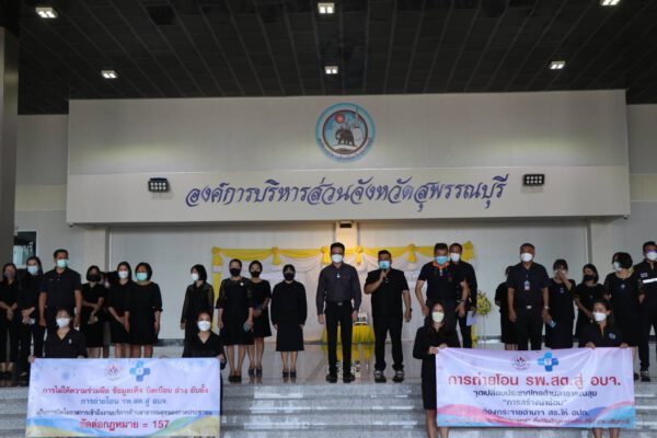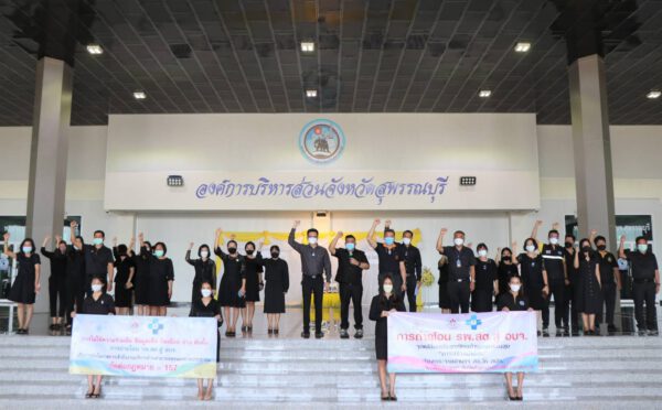 องค์การบริหารส่วนจังหวัดสุพรรณบุรี ร่วมแสดงสัญลักษณ์เรียกร้องให้แก้ไขปัญหาอุปสรรคในการถ่ายโอนภารกิจสถานีอนามัยเฉลิมพระเกียรติ 60 พรรษา นวมินทราชินี และโรงพยาบาลส่งเสริมสุขภาพตำบลให้แก่องค์การบริหารส่วนจังหวัด
