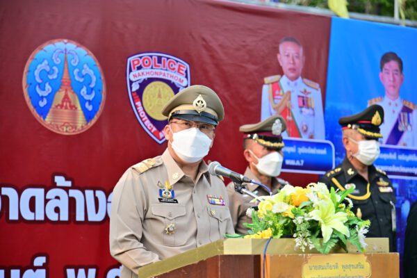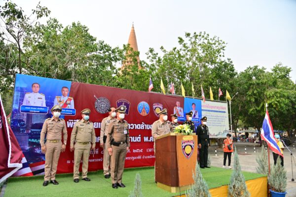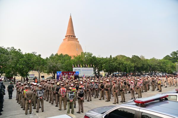 วันที่ 8 เมษายน 2565 ที่บริเวณลานหน้าพระศิลาขาว องค์พระปฐมเจดีย์ อำเภอเมืองจังหวัดนครปฐม นายสมเกียรติ พูลสุขเสริม รองผู้ว่าราชการจังหวัดนครปฐม เป็นประธานปล่อยแถวระดมกวาดล้างอาชญากรรมในช่วงเทศกาลสงกรานต์ ประจำปี2565 โดยมีผู้บังคับการตำรวจภูธรจังหวัดนครปฐม หัวหน้าส่วนราชการ พร้อมด้วยกำลังเจ้าหน้าที่ตำรวจในสังกัดตำรวจภูธรจังหวัดนครปฐม ตำรวจภูธรภาค 7 ตำรวจทางหลวง ตำรวจท่องเที่ยว ตำรวจตรวจคนเข้าเมือง ตำรวจปราบปรามยาเสพติด เจ้าหน้าที่ทหาร ฝ่ายปกครอง อาสาสมัครตำรวจ สำนักงานป้องกันและบรรเทาสาธารณภัยอาสาสมัครป้องกันภัยฝ่ายพลเรือน กำนัน ผู้ใหญ่บ้าน มูลนิธิ องค์กรการกุศล และภาคเอกชนต่างๆ ร่วมปล่อยแถวในครั้งนี้ เพื่อบูรณาการป้องกันอาชญากรรมในช่วงวันหยุดสงกรานต์ เนื่องจากในช่วงวันที่ 11-17 เมษายน 2565 เป็นช่วงที่มีวันหยุดติดต่อกันหลายวัน โดยที่ผ่านมา มีแนวโน้มการก่ออาชญากรรมคดีประทุษร้ายต่อทรัพย์ เช่นปล้นทรัพย์ ชิงทรัพย์ ลักทรัพย์ การใช้อาวุธปืน ส่งผลกระทบต่อความมั่นคงปลอดภัยในชีวิตและทรัพย์สินของประชาชน จึงได้ระดมทุกภาคส่วน ร่วมกวาดล้างอาชญากรรมระว่างวันที่ 8-11 เมษายน 2565 เพื่อรักษาความสงบเรียบร้อยในพื้นที่ และสร้างความเชื่อมั่นให้กับประชาชน