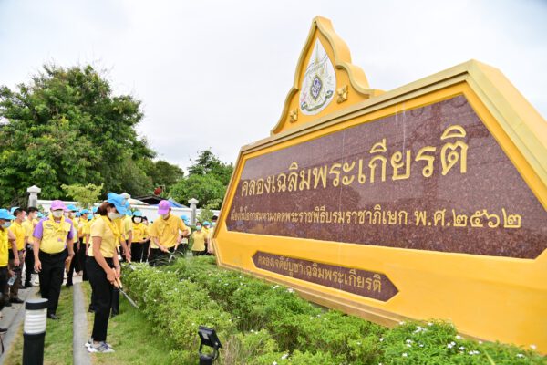 วันที่ 4 พฤษภาคม 2565 ที่บริเวณริมคลองเจดีย์บูชาเฉลิมพระเกียรติ ตำบลพระปฐมเจดีย์ อำเภอเมือง จังหวัดนครปฐม นายสุรศักดิ์ เจริญศิริโชติ ผู้ว่าราชการจังหวัดนครปฐม พร้อมด้วย นายกเหล่ากาชาดจังหวัด รองผู้ว่าราชการจังหวัด หัวหน้าส่วนราชการ ข้าราชการและเจ้าหน้าที่จากหน่วยงานต่างๆ ตลอดจนองค์กรปกครองส่วนท้องถิ่น และจิตอาสาพระราชทาน ร่วมกิจกรรมจิตอาสาพัฒนาคลองเจดีย์บูชา เนื่องในวันฉัตรมงคล ประจำปี 2565 เพื่อแสดงความจงรักภักดีและสำนึกในพระมหากรุณาธิคุณ ของพระบาทสมเด็จพระเจ้าอยู่หัว อีกทั้งส่งเสริมให้ทุกภาคส่วนและประชาชน เกิดจิตสำนึกในการทำความดี สร้างการมีส่วนร่วมในการดูแลรักษาสิ่งแวดล้อม พัฒนาภูมิทัศน์ให้มีความสะอาดอย่างต่อเนื่อง โดยน้อมนำแนวพระราชดำริมาปฏิบัติให้เกิดผลอย่างเป็นรูปธรรม