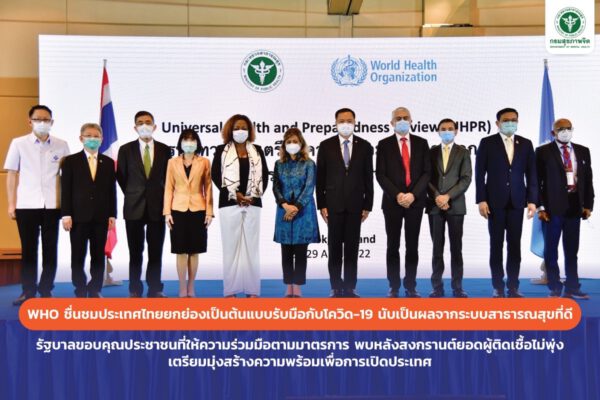 ดร.สมิลา อัสมา ผู้ช่วยผู้อำนวยการใหญ่องค์การอนามัยโลก ได้กล่าวยกย่องให้ประเทศไทยเป็นประเทศต้นแบบ 1 ใน 3 ที่มีการบริหารจัดการ และรับมือกับสถานการณ์โควิด-19 ได้อย่างมีประสิทธิภาพ ที่สำคัญนโยบายของรัฐบาลและการวางแผนอย่างรัดกุมจากคณะผู้บริหารกระทรวงสาธารณสุข โดยให้ไทยเป็นประเทศนำร่องที่จะได้เผยแพร่ประสบการณ์สู่สาธารณะในการประชุมสมัชชาอนามัยโลก 2565 เพื่อแลกเปลี่ยนประสบการณ์และแนวปฏิบัติที่ดี เพื่อให้เป็นประโยชน์แก่ประเทศสมาชิก และเพื่อให้เกิดการพัฒนาเครื่องมือและกลไกใหม่รองรับวิกฤติด้านสาธารณสุขสำหรับใช้งานทั่วโลกในอนาคต
