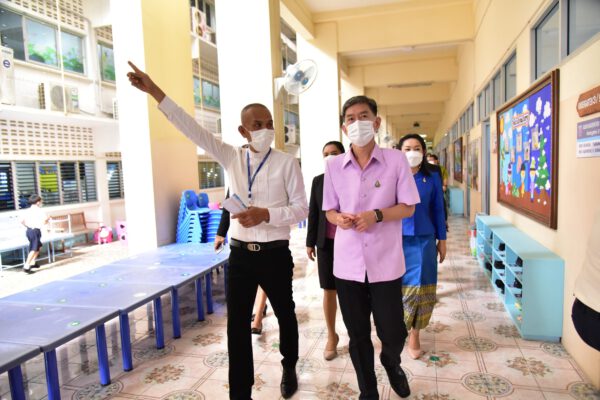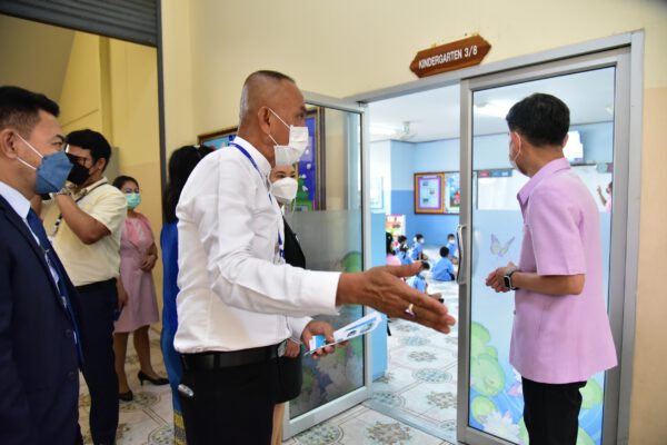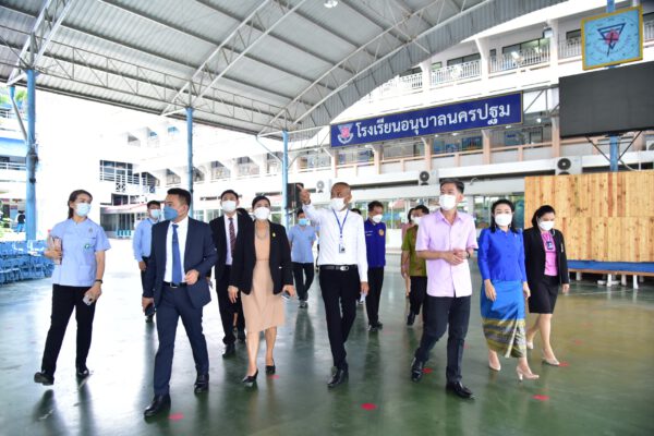 จากนั้นตรวจเยี่ยมโรงเรียนอนุบาลนครปฐม ซึ่งเป็นโรงเรียนชั้นอนุบาล และระดับประถมศึกษา ซึ่งทางโรงเรียนได้เน้น 6 มาตรการหลัก การเว้นระยะห่าง สวมหน้ากากอนามัย วัดอุณหภูมิ ล้างมือก่อนเข้าโรงเรียน ลดความแออัด ทำความสะอาดพื้นผิวตลอดเวลา นอกจากนี้ทางโรงเรียนมีนโยบายให้นักเรียนนำช้อน และอุปกรณ์การเรียนมาเองโดยไม่ให้ใช้ร่วมกับผู้อื่น เพื่อเป็นการป้องกันการแพร่เชื้อโควิด-19 ทั้งนี้ ผู้ว่าราชการจังหวัดนครปฐม พร้อมคณะ ได้ให้ข้อมูลการปฏิบัติตามมาตรการป้องกันโควิด-19 ของสถานศึกษา ตลอดจนการสร้างวินัยเคารพกฎจราจรให้กับนักเรียน เพื่อลดปัญหาการจราจรติดขัดในช่วงเปิดภาคเรียนด้วย