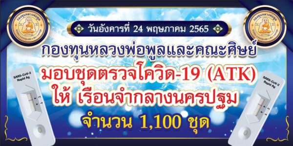 ในส่วนรายนามผู้ร่วมบุญกับกองทุนหลวงพ่อพูลวัดไผ่ล้อม โดยพระครูปลัดสิทธิวัฒน์เจ้าอาวาสวัดไผ่ล้อม ซื้อชุด ATK ตรวจโควิด มอบให้ เรือนจำจังหวัดนครปฐม จำนวน1,100 ชุด ดังนี้