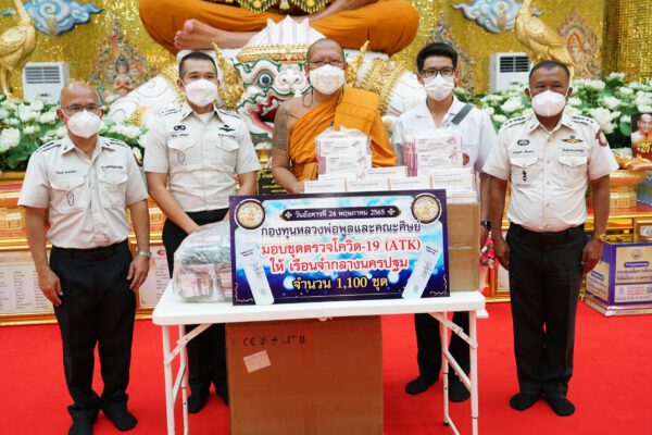 โดยได้มอบให้กับเรือนจำกลางนครปฐม ซึ่ง พ.ต.ท.วรชัย อารักษ์รัฐ ผู้บัญชาการเรือนจำนครปฐม มอบหมายให้นายธิตินัย พาติกบุตร ผู้อำนวยการส่วนควบคุมผู้ต้องขัง และคณะ เป็นผู้รับมอบ พร้อมกล่าว่า ทางเรือนจำให้ความสำคัญในการตรวจโควิด19 ด้วยชุดตรวจ(ATK) นี้มีความจำเป็นมาก เพราะต้องใช้เมื่อผู้ต้องโทษแต่ละรายได้เข้ามายังเรือนจำวันแรก ก้จะต้องมีการตรวจคัดกรองครั้งแรก ก่อนแยกคุมขังดูอาการอีก5วันตรวจครั้งที่สอง และอีก10วันตรวจครั้งที่3 ก่อนจะนำตัวส่งเข้าไปแดนคุมขัง ซึ่งผู้ต้องโทษเมื่อแรกเข้าต้องใช้ชุดตรวจโควิดมากถึงจำนวน 3 ชุด รวมทั้งเมื่อผู้ที่พ้นโทษก่อนออกก็ต้องตรวจอีกเช่นกัน ในส่วนงบประมาณนั้นก็มีจำกัด และการที่พระครูปลัดสิทธิวัฒน์ (หลวงพี่น้ำฝน) เจ้าอาวาสวัดไผ่ล้อมพร้อมคณะศิษย์ ได้ร่วมจัดซื้อชุดตรวจโควิด19(ATK)จำนวน 1,100ชุด ถือเป็นการช่วยลดการใช้จ่ายงบประมาณได้เป็นอย่างดียิ่ง