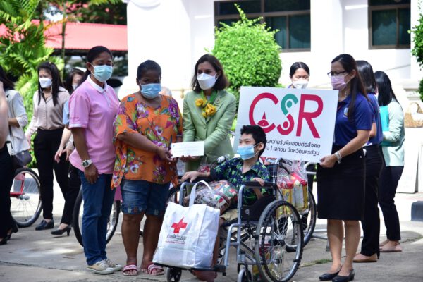 ในการนี้เหล่ากาชาดจังหวัดนครปฐมได้สนับสนุนถุงยังชีพและไข่ไก่ให้กับผู้พิการ ทั้ง 13 ราย และศูนย์ส่งเสริมความรับผิดชอบต่อสังคมของภาคธุรกิจ/เอกชน จังหวัดนครปฐม(CSR) ได้มอบวีลแชร์ จำนวน 2 คัน สำหรับคนพิการทางการเคลื่อนไหวกรณีที่ต้องมีผู้ช่วยเหลือดูแล