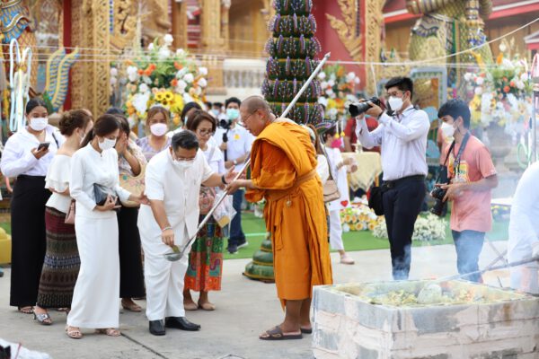 รวมทั้งพิธีการบวงสรวงเทพยาดา สิ่งศักดิ์สิทธิ์ โดยคณะพราหมณ์ บัณฑิตศิษย์มีครูเพื่อความเป็นสิริมงคล พร้อมนิมนต์พระสังฆาธิการเจริญพระพุทธมนต์ และเททองหล่อพระองคุลีมารเถระ ขนาดความสูง 3 เมตร และองคุลีมาร ขนาด 1 เมตร ซึ่งหลวงพี่น้ำฝน เป็นประธานนำเททองหล่อพระองคุลีมารเถระ และกล่าวถึงเจตนาในการก่อสร้างพระองคุลีมาลเถระ ซึ่งเป็นองค์แรกในประเทศไทย โดยมีวัตถุประสงค์ให้เป็นสัญลักษณ์กับคนที่ต้องการกลับตัวกลับใจ จากการหลงผิดและเคยพลาดกับการดำเนินชีวิต โดยอยากจะให้ท่านเหล่านั้นได้กลับตัวกลับใจ จึงได้กำหนดในวันมงคลอายุวัฒนะ ครบ 50 ปี เพื่อให้คณะศิษย์ ได้มาร่วมบุญ โดยจะมีการพุทธาภิเษกในวันอาสาฬหบูชา ซึ่งจะตรงกับวันที่ 13 กรกฎาคม 2565 ในเวลา 9.00 น. จึงขอเชิญทุกๆท่านมาร่วมพิธีอันเป็นมงคลในครั้งเช่นกันอีกด้วย