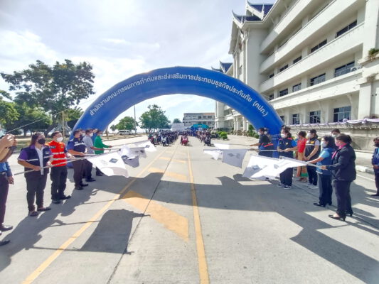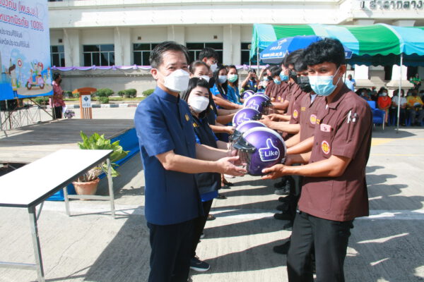ซึ่งในวันนี้ ทางสำนักงานฯร่วมกับชมรมประกันวินาศภัย จึงจัดทำหมวกนิรภัย เพื่อนำมาแจกประชาสัมพันธ์ ให้กับประชาชน และนักศึกษา ที่เข้าร่วมกิจกรรม จำนวน 150 ใบ พร้อมปล่อยขบวนรถรณรงค์เพื่อประชาสัมพันธ์ ให้ประชาชนในพื้นที่จัดทำประกันภัย พ.ร.บ. และสวมหมวกนิรภัย 100% จากนั้น ผู้ว่าราชการจังหวัด พร้อมผู้เข้าร่วมงาน ได้ร่วมปล่อยขบวนรณรงค์การขับขี่ปลอดภัยสวมหมวกนิรภัย100% จากบริเวณลานหน้าศาลากลางจังหวัด ไปยังสี่แยกไฟแดง ตลาดสดทศบาลเมืองประจวบคีรีขันธ์ ///////////
