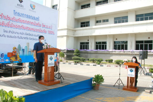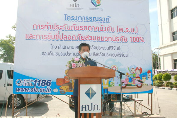 ด้าน นางสาวสุชาดา เหล่างาม ผอ.คปภ.จ.ประจวบฯ กล่าวว่า สำนักงานคณะกรรมการกำกับและส่งเสริมการประกอบธุรกิจประกันภัยจังหวัดประจวบฯ ได้ร่วมกับชมรมประกันวินาศภัยจังหวัดประจวบฯ ได้กำหนดการจัดกิจกรรมดังกล่าว เพื่อเป็นการส่งเสริมให้ประชาชน ตระหนักถึงความสำคัญเรื่องของการจัดทำประกันภัยรถภาคบังคับตามพระราชบัญญัติคุ้มครองผู้ประสบภัยจากรถ พ.ศ.2535 โดยรถทุกคนต้องจัดทำประกันภัยและสร้างจิตสำนึกในการขับขี่อย่างปลอดภัย สวมหมวกนิรภัย 100% ซึ่งเป็นการปฏิบัติตามกฎหมาย และจากอุบัติเหตุจราจรที่เกิดขึ้นในจังหวัด ผู้ประสบภัยส่วนใหญ่เป็นผู้ใช้รถจักรยานยนต์ และไม่สวมหมวกนิรภัย