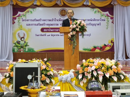 วันนี้(19 มิ.ย.65) ที่ อาคารหอประชุม วิทยาลัยเทคนิคราชบุรี ดร.สาโรจน์ ขอจ่วนเตี๋ยว นายกสภาสถาบันการอาชีวศึกษาภาคกลาง 4 เป็นประธานเปิด “โครงการเสริมสร้างความเข้าใจเพื่อมุ่งสู่การพัฒนาคุณภาพนักศึกษาใหม่ และการเสริมสร้างคุณธรรม จริยธรรม นักศึกษาระดับปริญญาตรี สถาบันการอาชีวศึกษาภาคกลาง 4 ประจำปีการศึกษา 2565” และพิธีไหว้ครูหรือบูชาครู พร้อมขอให้นักศึกษา ขยันหมั่นเพียร ศึกษาเรียนรู้ ได้รวดเร็วเหมือนหญ้าแพรกที่โตวันโตคืน มีความทนต่อสภาวะแวดล้อม และทนต่อการเหยียบย่ำ หรืออีกนัยหนึ่งคือต้องยอมรับฟังคำว่ากล่าวตักเตือนสั่งสอนของครูอาจารย์ /มีสติปัญญา ฉลาดหลักแหลม เหมือนดอกเข็ม รู้เท่าทันและสามารถนำความรู้ไปใช้อย่างชาญฉลาดและอยู่ในศีลธรรมอันดี