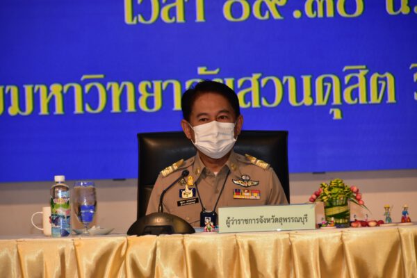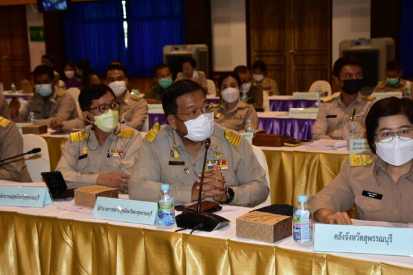 ส่วนเรื่องการแก้ไขปัญหาความยากจนของประชาชนในพื้นที่ ขอให้ผู้นำชุมชน ผู้นำท้องที่และผู้นำท้องถิ่น สำรวจความเดือดร้อนของคนในพื้นที่และประสานมายังอำเภอและจังหวัดตามลำดับ/ด้าน สถานการณ์โควิด 19 ของสุพรรณบุรีเริ่มคลี่คลาย มีการผ่อนปรนมาตรการต่างๆ แก่ร้านค้าและสถานประกอบการ เพื่อให้เศรษฐกิจดีขึ้น ที่สำคัญคือการรณรงค์การฉีดวัคซีนป้องกันโควิด 19 ในกลุ่ม 608 อยากให้ฉีดได้ มากกว่า 60 % ขอให้ สาธารณสุข และสำนักงานจังหวัด รับผิดชอบ /ในด้านของงบประมาณจังหวัด และกลุ่มจังหวัด ต้องมีการปรับโครงการใหม่เพื่อให้ถูกต้อง /ในด้านการอนุรักษ์ทรัพยากรธรรมชาติและสิ่งแวดล้อม ต้องเริ่มรณรงค์ ด้วยการทำ MOU เรื่องการรักษาสิ่งแวดล้อม กับส่วนราชการและอำเภอทุก อำเภอการเลือกผลงานดีเด่น อาทิ การปลูกต้นไม้/การขุดลอกคูคลอง/การจัดการขยะ ให้ครบทุกด้าน และสุดท้ายด้านการเตรียมรับสถานการณ์น้ำท่วม คือการกำจัดผักตบชวา/ สิ่งกีดขวางทางน้ำ