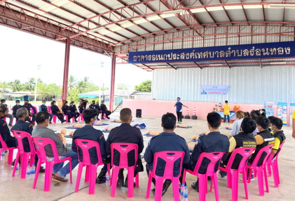 ผู้สื่อข่าวรายงานว่า เมื่อเร็วๆนี้ ที่อาคารอเนกประสงค์ เทศบาลตำบลร่อนทอง อ.บางสะพาน จ.ประจวบคีรีขันธ์ นางณิชชา คงนิล ปลัดอาวุโสอำเภอบางสะพาน เป็นประธานในพิธีเปิด โครงการอบรมฝึกทักษะ CPR ช่วยเหลือเพื่อนมนุษย์ โดยมี นายอุดม สดใส กรรมการผู้จัดการ บจก.ไลน์ ทรานสปอร์ต ผู้บริหารในนามกลุ่มธุรกิจ เอสวีแอล กรุ๊ป (SVL Group) กล่าวรายงาน โดยมี นายนิกร โพธิ์น้อย นายกองค์การบริหารส่วนตำบลร่อนทอง พ.ต.ท.ธนัช เฮ้าพรม สวป.สภ.บางสะพาน ร.ต.ท. สุขวุฒิ แสงบัว รอง สว.จร.สภ.บางสะพาน นายมงคล สุขประเสริฐ กำนันตำบลร่อนทอง ผู้นำชุมชน ชาวบ้านชุมชนในพื้นที่ เข้าร่วม โดยผู้เข้ารับการอบรม ประกอบด้วย ชุดรักษาความปลอดภัยหมู่บ้าน (ชรบ.) อาสาสมัครป้องกันภัยฝ่ายพลเรือน (อปพร.) อาสาสมัครสาธารณสุขประจำหมู่บ้าน (อสม.) พนักงาน เจ้าหน้าที่องค์กรปกครองส่วนท้องถิ่น (เทศบาลตำบลร่อนทอง , อบต.ร่อนทอง )