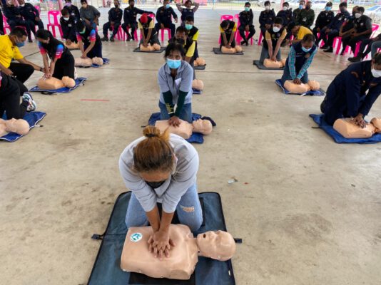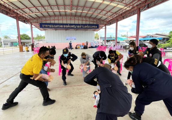 นางณิชชา คงนิล ปลัดอาวุโสอำเภอบางสะพาน กล่าวว่า ขอขอบคุณ ผู้บริหาร บริษัทไลน์ ทรานสปอร์ต กลุ่มธุรกิจเอสวีแอล กรุ๊ป ที่ได้เห็นถึงความสำคัญร่วมส่งเสริมศักยภาพชุมชน กลุ่ม ชรบ. อปพร. ผู้นำ ชุมชนท้องถิ่นตำบลร่อนทอง อำเภอบางสะพาน จัดทีมวิทยากรผู้เชี่ยวชาญมาร่วมให้ความรู้ในการทำ CPR สอนการปฐมพยาบาลเบื้องต้น เพื่อช่วยคืนชีวิตให้กับผู้ป่วย