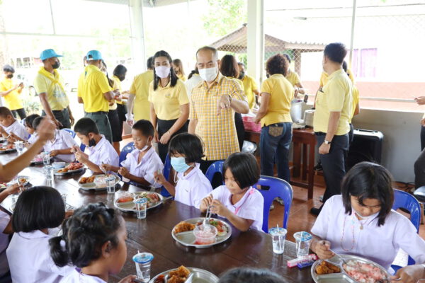 จึงถือโอกาสนี้ ร่วมกับจังหวัดประจวบคีรีขันธ์ พร้อมด้วยสมาคมส่งเสริมวัฒนธรรมหญิงจังหวัด เหล่ากาชาดจังหวัด ชมรมแม่บ้านมหาดไทยจังหวัด ชมรมแม่ดีเด่นแห่งชาติจังหวัด และสำนักงานพัฒนาสังคมและความมั่นคงของมนุษย์จังหวัดประจวบฯ จัดกิจกรรมโครงการน้ำพระทัยพระราชทาน เลี้ยงอาหารกลางวันแก่เด็กนักเรียน โรงเรียนตำรวจตระเวนชายแดนบ้านคีรีล้อม จำนวน 98 คน พร้อมทั้งมอบอุปกรณ์การเรียน อุปกรณ์กีฬา และสิ่งของสนับสนุนการเรียนการสอน เพื่อเฉลิมพระเกียรติพระบาทสมเด็จพระวชิรเกล้าเจ้าอยู่หัว เนื่องในโอกาสเฉลิมพระชนมพรรษา ในเดือน กรกฎาคม 2565 นี้//////////////