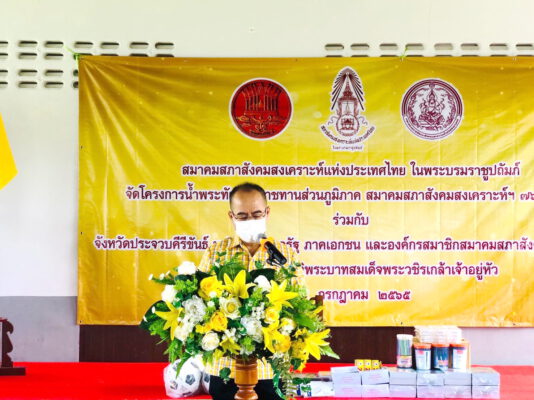 วันที่ 5 กรกฎาคม 2565 ที่โรงเรียนตำรวจตระเวนชายแดนบ้านคีรีล้อม ตำบลช้างแรก อำเภอบางสะพานน้อย จังหวัดประจวบคีรีขันธ์ นายคมกริช เจริญพัฒนสมบัติ รองผู้ว่าราชการจังหวัดประจวบคีรีขันธ์ เป็นประธานในพิธีเปิดกิจกรรมโครงการน้ำพระทัยพระราชทานส่วนภูมิภาค สมาคมสภาสังคมสงเคราะห์ฯ 76 จังหวัด ประจำปี 2565 เพื่อเฉลิมพระเกียรติพระบาทสมเด็จพระวชิรเกล้าเจ้าอยู่หัว