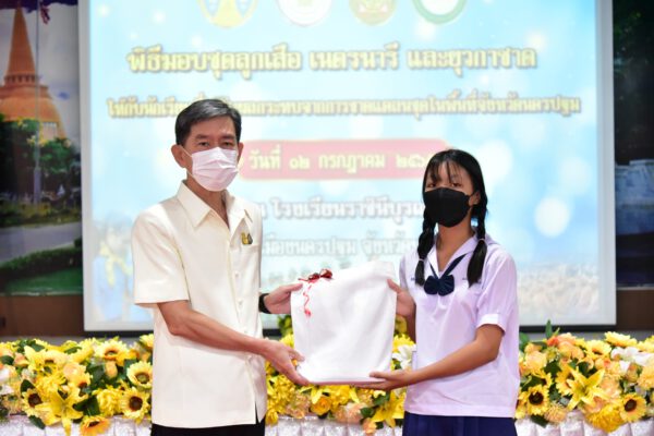 การมอบชุดลูกเสือ เนตรนารีและยุวกาชาดให้กับนักเรียนที่ได้รับผลกระทบจากการขาดแคลนชุดในพื้นที่จังหวัดนครปฐม ในครั้งนี้ มีนักเรียนเข้ารับมอบชุดลูกเสือ เนตรนารี จำนวน 10 ราย ได้แก่ นักเรียน ระดับชั้น ป. 4 และ ป. 5 เป็นลูกเสือ–เนตรนารีสามัญ สังกัดสำนักงานเขตพื้นที่การศึกษาประถมศึกษานครปฐม เขต 1 จำนวน 4 ราย,นักเรียน ระดับชั้น ป.5 และ ป.6 เป็นลูกเสือเนตรนารี และ สามัญ สังกัดสำนักงานเขตพื้นที่การศึกษาประถมศึกษานครปฐม เขต 2 จำนวน 3 ราย และนักเรียนระดับชั้น ป.5 และ ม.1 เป็นลูกเสือ–เนตรนารี สามัญ และ สามัญรุ่นใหญ่ สังกัดองค์การบริหารส่วนท้องถิ่น จำนวน 3 ราย
