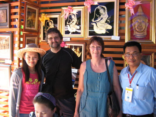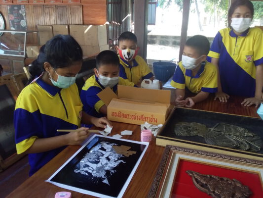 นายเสนาะ บุตรขจร ครูชำนาญการ กล่าวว่า อดีตเมื่อสิบกว่าปีที่ผ่านมา ตนเคยได้รับการคัดเลือกเข้าร่วมโครงการนักธุรกิจน้อยมีคุณธรรม นำสู่เศรษฐกิจสร้างสรรค์ ในครั้งแรกนั้นได้นำเสนอผลิตภัณฑ์การลดปัญหาโลกร้อน เรื่อง“ภาพนูนต่ำจากกระดาษรีไซเคิล” ปีการศึกษา 2565 นี้ ตนได้ร่วมกับครูธนรัตน์ ใจกล้า หัวหน้ากลุ่มสาระการงานอาชีพ ส่งนวัตกรรมการจัดการเรียนการสอนงานอาชีพและผลิตภัณฑ์ เรื่อง “กระจกถมทองคำเปลว” ชิ้นงานมีลักษณะคล้ายกับการลงรักปิดทอง เหมาะสำหรับมอบเป็นของที่ระลึกแสดงความยินดีในโอกาสต่างๆ