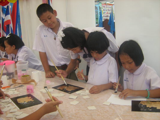 นางจุฑามาส คล้ายสุบรรณ ผู้อำนายการโรงเรียนอนุบาลบ้านท่าระยาจักร อำเภออู่ทอง จังหวัดสุพรรณบุรี เปิดเผยว่า สำนักงานคณะกรรมการการศึกษาขั้นพื้นฐาน(สพฐ.) ได้ประกาศผลการคัดเลือกนวัตกรรมการจัดการเรียนการสอนงานอาชีพและผลิตภัณฑ์ โครงการนักธุรกิจน้อยมีคุณธรรม นำสู่เศรษฐกิจสร้างสรรค์ ระดับประเทศ โดยมีโรงเรียนในสังกัด สพฐ. ทั่วประเทศส่งผลงานเข้าร่วมประกวด รวมทั้งสิ้น 503 โรงเรียน ซึ่งโรงเรียนอนุบาลบ้านท่าพระยาจักรส่งนวัตกรรม เรื่อง“กระจกถมทองคำเปลว” เป็นโรงเรียนเดียวในจังหวัดสุพรรณบุรีที่ผ่านการคัดเลือกระดับประเทศ