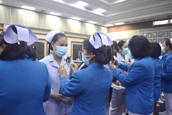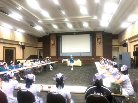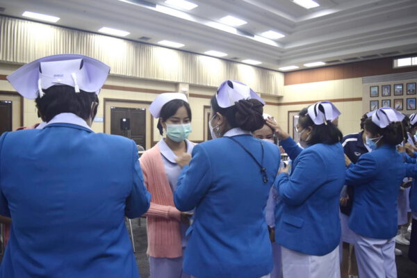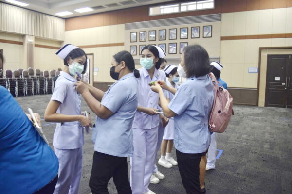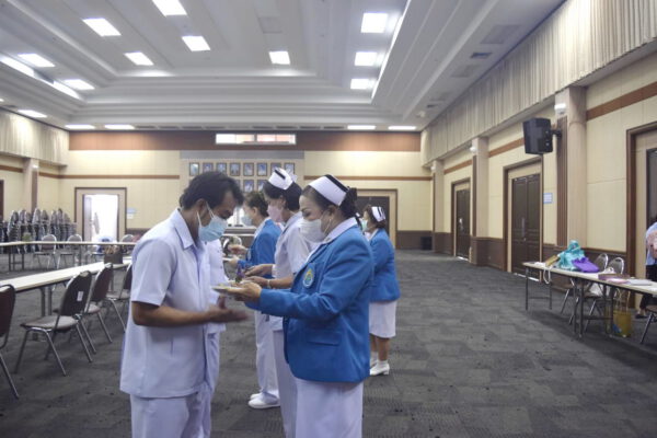 โดยได้จัดให้มีการต้อนรับน้องสู่การพยาบาล โดยพยาบาลรุ่นพี่ ที่มาตั้งแถวรอติดเข็มกลัดดอกไม้ให้กับพยาบาลรุ่นน้องๆ ก่อนทั้งหมดร่วมกันเพลงมาร์ชพยาบาล ซึ่งบรรยากาศเต็มไปด้วยความอบอุ่นและประทับใจ จากนั้น นางนฤมล วัลลภวรกิจ รอง ผอ.รพ.ประจวบฯ และ หัวหน้ากลุ่มการพยาบาล ได้กล่าวต้อนรับ และ กล่าวแนะนำกลุ่มการพยาบาล พร้อมมีการบรรยายในเรื่องจริยธรรม และจรรยาบรรณในวิชาชีพการพยาบาล อีกทั้งในเรื่องระเบียบวินัย และการปฏิบัติงาน