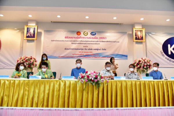 วันที่ 22 กรกฎาคม 2565 ที่บริษัท เคพีฟู้ดส์ จำกัด อำเภอนครชัยศรี จังหวัดนครปฐมนายสุรศักดิ์ เจริญศิริโชติ ผู้ว่าราชการจังหวัดนครปฐม เป็นประธานและสักขีพยานพิธีลงนามบันทึกความร่วมมือ (MOU) คืนคนดีสู่สังคม ฝึกทักษะวิชาชีพผู้ต้องขังในสถานประกอบการนอกเรือนจำ ระหว่างเรือนจำกลางนครปฐม กับบริษัท เคพีฟู้ดส์ จำกัด โดยมี นางสาวณัฏฐ์ปภาณ จันทร์ละมูล นายกสมาคมสตรีนักธุรกิจและวิชาชีพแห่งประเทศไทย–นครปฐม นางสาวขวัญจิตร ยั่งยืน กรรมการผู้จัดการ–บริษัท เคพีฟู้ดส์จำกัด พันตำรวจโทวรชัย อารักษ์รัฐ ผู้บัญชาการเรือนจำกลางนครปฐม ผู้อำนวยการกองพัฒนาพฤตินิสัย กรมราชทัณฑ์ ร่วมลงนามในครั้งนี้ พร้อมด้วย นายยงยุทธ สวนทองปลัดจังหวัดนครปฐม และสมาชิกสมาคมสตรีนักธุรกิจและวิชาชีพแห่งประเทศไทย–นครปฐม ร่วมเป็นสักขีพยาน