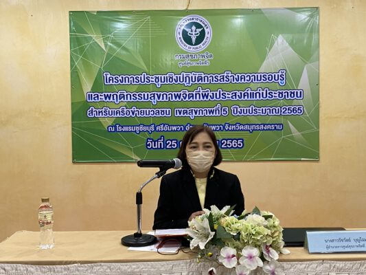 วันที่ 25 กรกฎาคม พ.ศ.2565 เวลา 09.30 น. ณโรงแรมชูชัยบุรีศรีอัมพวา อำเภออัมพวา จังหวัดสมุทรสงคราม ศูนย์สุขภาพจิตที่ 5 จัดโครงการประชุมเชิงปฎิบัติการสร้างความรอบรู้และพฤติกรรมสุขภาพจิตที่พึงประสงค์แก่ประชาชน สำหรับเครือข่ายมวลชนเขตสุขภาพที่ 5 ปีงบประมาณ 2565 โดยได้รับเกียรติจาก นางสาวรัชวัลย์ บุญโฉม ผู้อำนวยการ ศูนย์สุขภาพจิตที่ 5 เป็นประธานกล่าวเปิดโครงการ และนางสาวลำไพ เฮ้าไกร นักจิตวิทยาคลีนิคชำนาญการพิเศษ กล่าวรายงานวัตถุประสงค์การจัดโครงการ
