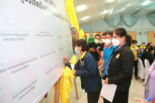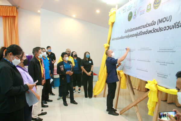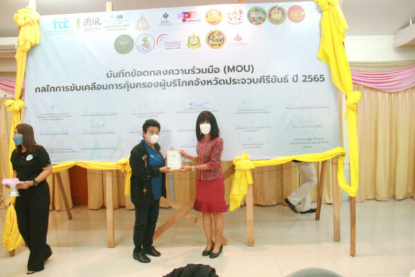หน่วยงานประจำจังหวัดประจวบฯ เห็นถึงความสำคัญและประโยชน์ของการทำบันทึกข้อตกลง (MOU) ซึ่งจะเป็นกลไกความร่วมมือรูปแบบหนึ่งที่จะก่อให้เกิดประโยชน์แก่ทุกฝ่ายการจัดทำบันทึกข้อตกลงวันนี้ประกอบด้วยหน่วยงานที่เกี่ยวข้อง ดังนี้ หน่วยงานประจำจังหวัดประจวบคีรีขันธ์ สภาองค์กรของผู้บริโภค หน่วยประจำเขตพื้นที่ภาคตะวันตกสภาองค์กรของผู้บริโภค ประธานอนุกรรมการคุ้มครองผู้บริโภคจังหวัดประจวบคีรีขันธ์ บริษัทกลางคุ้มครองผู้ประสบภัยจากรถ จำกัด สาขาประจวบฯ สำนักงานขนส่งจังหวัด สำนักงานเจ้าท่าภูมิภาคสาขาประจวบฯ สำนักงานที่ดินจังหวัด สำนักงานโยธาธิการและผังเมืองจังหวัด สำนักงานสาธารณสุขจังหวัด สถานีวิทยุกระจายเสียงแห่งประเทศไทยประจวบฯ สำนักงานทรัพยากรธรรมชาติและสิ่งแวดล้อมจังหวัด สำนักงานพาณิชย์จังหวัด สำนักงานพลังงานจังหวัด /////////