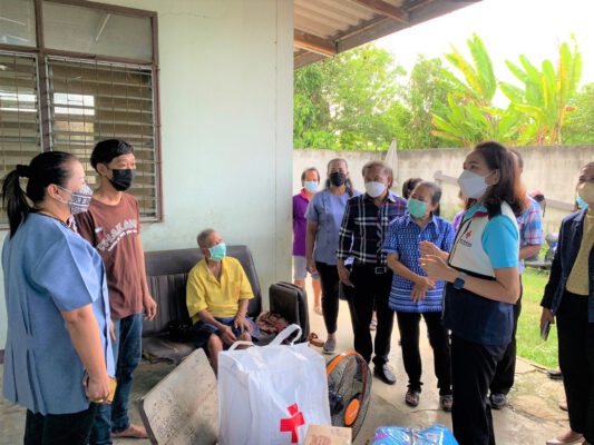 วันพุธที่ 3 สิงหาคม พ.ศ. 2565 นางวราภรณ์ เจริญศิริโชติ นายกเหล่ากาชาดจังหวัดนครปฐม/ประธานแม่บ้านมหาดไทยจังหวัดนครปฐม พร้อมด้วย เจ้าหน้าที่พัฒนาสังคมและความมั่นคงของมนุษย์จังหวัดนครปฐม นายกเทศบาลเมืองนครปฐม ปลัดอำเภอผู้นำท้องถิ่น และผู้นำท้องที่ ลงพื้นที่เยี่ยมผู้ประสบปัญหาทางสังคม รายได้ไม่เพียงพอแก่การครองชีพ ได้รับการประสานจากสถานบันกัลยาณ์ราชนครินทร์ในการให้ความช่วยเหลือครอบครัว นายธนาพล แซ่ตั๊น อายุ 37 ปี โดยเหล่ากาชาดจังหวัดนครปฐมมอบถุงยังชีพ จำนวน 1 ชุด นมดัชมิลล์ จำนวน 2 ลัง พัดลม จำนวน 1 ตัว ที่นอน จำนวน2 ชิ้น และของใช้ที่จำเป็น พร้อมมอบเงินช่วยเหลือ จำนวน 3,000 บาท อีกทั้ง พัฒนาสังคมและความมั่นคงของมนุษย์จังหวัดนครปฐม มอบพัดลม จำนวน 1 ตัว ที่นอนจำนวน 1 ชุด ผ้าเช็ดตัว จำนวน 3 ผืน และมอบเงินสงเคราะห์ผู้ประสบปัญหาทางสังคมกรณีฉุกเฉิน จำนวน 2,000 บาท รวมทั้งสิ้น 5,000 บาท ให้กับ นายธนาพล แซ่ตั๊น เพื่อบรรเทาความเดือดร้อนเบื้องต้น ณ บ้านเลขที่ 90 หมู่ 10 ตำบลนครปฐม อำเภอเมืองฯจังหวัดนครปฐม