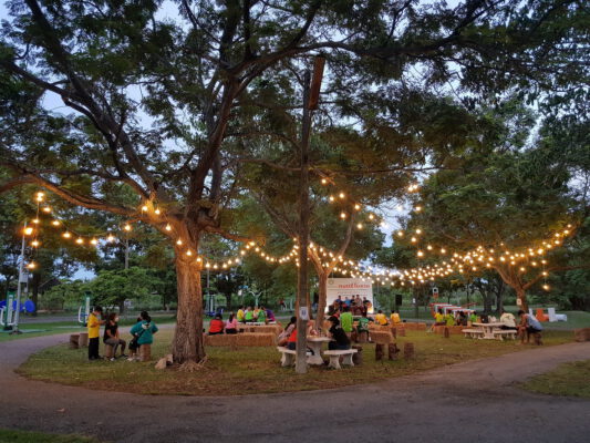 โดยทาง อบจ. ซึ่งเป็นผู้ดูแลในสถานที่แห่งนี้ก็พยายามที่จะจัดสิ่งต่างๆที่อำนวยความสะดวกเพื่อออกกำลังกายต่างๆ เข้ามาในสถานที่แห่งนี้ให้มากที่สุด ตามที่ผู้เข้ามาใช้บริการต้องการตามสมัยนิยม เช่นตอนนี้ก็จะมีเครื่องออกกำลังกายกลางแจ้ง ออกมาให้บริการด้วย ซึ่งมาตั้งในสวนสาธารณะ แล้วก็มีจัดเครื่องเสียง ลานบริเวณให้ทางแอโรบิคซึ่งสามารถจะมีผู้นำมีเสียง มีจังหวะ มีดนตรีให้ผู้เข้ามาออกกำลังกาย สามารถออกกำลังกายตามจังหวะโดยมีผู้นำ ซึ่งเราก็จะเตรียมความพร้อม ปัจจุบันนี้ก็จะมีความต้องการว่า ในสวนสาธารณะนี้ ควรจะมีดนตรีในสวนตามสมัยนิยม เหมือนอย่างที่อื่นๆ อย่างที่กรุงเทพฯ ซึ่งทาง อบจ. ก็ได้สนองตอบตามความต้องการของผู้เข้ามาใช้บริการ โดยเราก็จัดดนตรีในสวน ในสวนสาธารณะแห่งนี้ ทุกวันพุธตอนเย็น เพื่อที่จะให้ทุกคนที่ออกกำลังกาย สามารถที่จะได้ฟังเสียงเพลง ภายใต้บรรยากาศใต้ต้นไม้ที่ร่มรื่น ในเวลายามเย็นหลังจากเลิกงานแล้ว โดยที่เราจะดูแลความสะอาด ดูแลความเรียบร้อย ดูแลความปลอดภัย ไม่ว่าจะเป็นเรื่องแสงสว่าง เรื่องขยะ เรื่องความร่มรื่นต่างๆ ให้อยู่ในมาตรฐานที่มีความปลอดภัยได้ตลอด