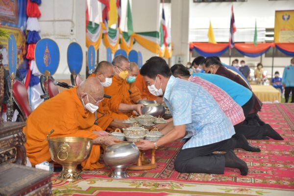 โดย พระครูสุวรรณธรรมานุยุต หลวงพ่อสมบุญ ปิยธมฺโม เจ้าอาวาสวัดลำพันบอง จ.สุพรรณบุรี อายุ ๑๐๑ ปี เป็นประธานฝ่ายสงฆ์ และ ดร.สมบัติ คุรุพันธ์ คณะกรรมการโฮลิมปิกแห่งประเทศไทย ในพระบรมราชูปถัมภ์ นายกสมาคมกีฬาแฮนด์บอลแห่งประเทศไทย เป็นประธาน ฝ่ายฆราวาส
