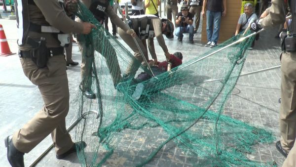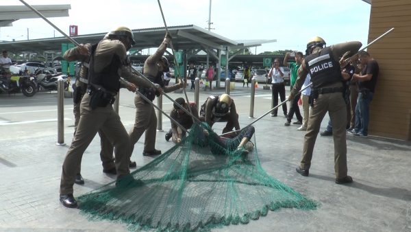 ตำรวจชัยนาทโชว์ทอดแหจับคนร้ายจี้ตัวประกันร้านทอง ในการซ้อมเเผนเผชิญเหตุ