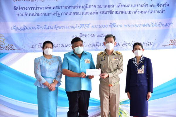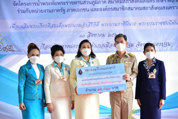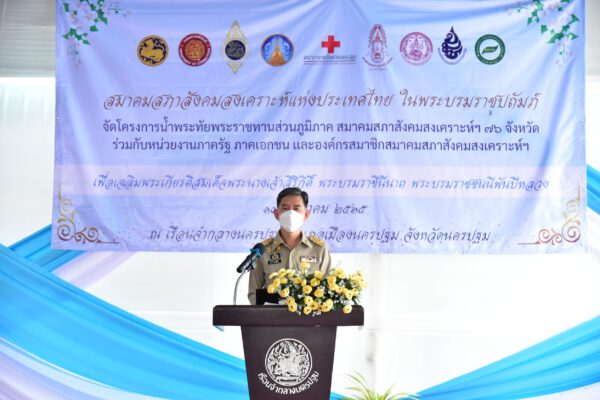 นางวราภรณ์ เจริญศิริโชติ นายกเหล่ากาชาดจังหวัดนครปฐม กล่าวว่า สมาคมสภาสังคมสงเคราะห์แห่งประเทศไทย ในพระบรมราชูปถัมภ์ ได้น้อมเกล้าฯ รับพระราชเสาวนีย์ในสมเด็จพระนางเจ้าสิริกิติ์ พระบรมราชินีนาถ พระบรมราชชนนีพันปีหลวงดำเนินงานโครงการน้ำพระทัยพระราชทาน สมาคมสภาสังคมสงเคราะห์แห่งประเทศไทยฯ โดยในปี พ.ศ. 2565 ดำเนินการเป็นปีที่ 24 จึงได้ร่วมกับจังหวัดนครปฐม จัดกิจกรรมโครงการน้ำพระทัยพระราชทานเลี้ยงอาหารกลางวัน พร้อมมอบสิ่งของเครื่องใช้ที่จำเป็นให้กับผู้ต้องขังหญิงในเรือนจำกลางนครปฐม จำนวน 450 ราย เพื่อเฉลิมพระเกียรติพระบาทสมเด็จพระวชิรเกล้าเจ้าอยู่หัว และสมเด็จพระนางเจ้าสิริกิติ์พระบรมราชินีนาถ พระบรมราชชนนีพันปีหลวง เนื่องในโอกาสเฉลิมพระชนมพรรษาในเดือนกรกฎาคมและสิงหาคม 2565