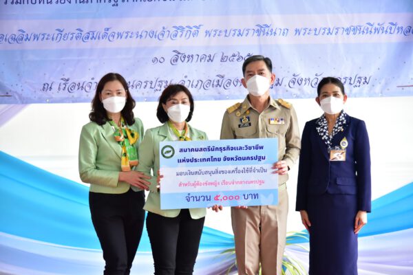 โดยชมรมแม่บ้านมหาดไทยจังหวัดนครปฐม ได้นำเงินสนับสนุนจำนวนดังกล่าวจัดเลี้ยงอาหารมื้อกลางวัน จัดซื้อสิ่งของเครื่องใช้จำเป็น อาทิ ผ้าขนหนู จำนวน 450 ผืนชุดชั้นใน จำนวน 450 ชุด และผ้าอนามัย จำนวน 900 ห่อ เพื่อมอบให้กับผู้ต้องขังหญิงดังกล่าว