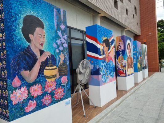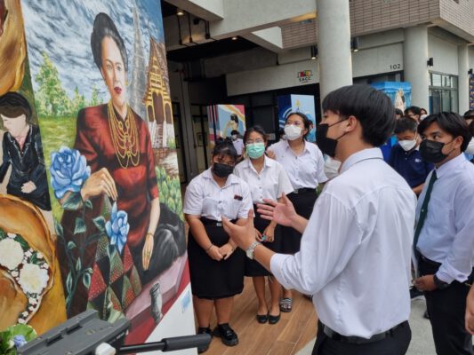 โดยนางขวัญใจ พิมพ์พิมล ผู้อำนวยการวิทยาลัยช่างศิลปะสุพรรณบุรี กล่าวว่าภายในงาน มีการจัดแสดงนิทรรศการศิลปะประกอบบทเพลงพระราชนิพนธ์ แนวสตรีทอาร์ต ผ่านกระบวนการวาดภาพระบายสีสร้างสรรค์งานจิตรกรรมบนผนัง กว้าง 80 ซม.สูง 2 เมตร ในหัวข้อ พระราชกรณียกิจพระบรมราชชนนีพันปีหลวง รวมทั้งสิ้นจำนวน 12 ผลงาน ซึ่งนักศึกษาใช้เวลาวาดภาพพระบรมสาทิสลักษณ์ 3 วันและจะจัดแสดงเพื่อให้ประชาชนและนักท่องเที่ยวได้ชมงาน ตั้งแต่วันที่ 11 สิงหาคม-30 กันยายน 2565 เวลา 09.00-16.00 น.