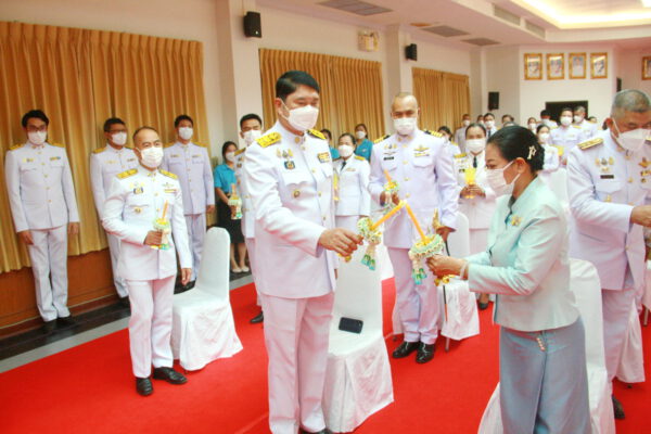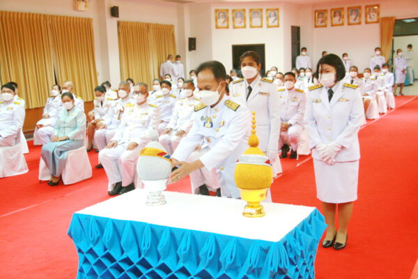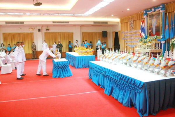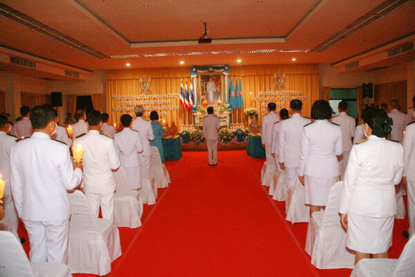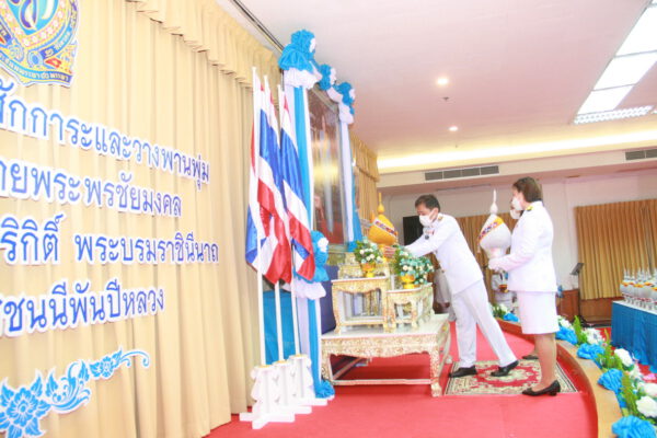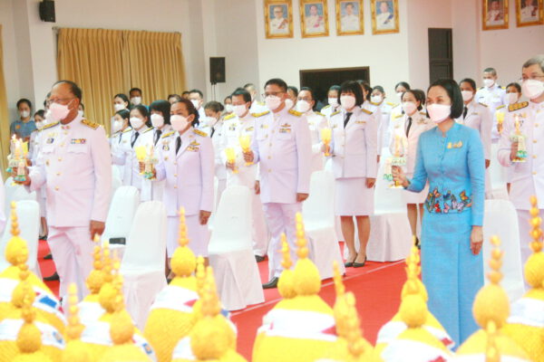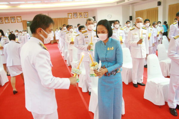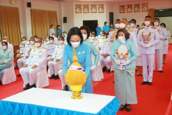 โดยมี นายสมบูรณ์ ดวงดารา ผู้พิพากษาหัวหน้าศาลจังหวัดประจวบคีรีขันธ์ นางสาววราภรณ์ คริศณุ ผู้พิพากษาหัวหน้าศาลเยาวชนและครอบครัวจังหวัด นายพรหมพิริยะ กิจนุสนธิ์ , ว่าที่พันตรีอดิศักดิ์ น้อยสุวรรณ นายกิตติพงศ์ สุขภาคกุล , นายคมกริช เจริญพัฒนสมบัติ รองผู้ว่าราชการจังหวัด นายสินาทร โอ่เอี่ยม ปลัดจังหวัด พล.ต.ต.วันชัย ธารณธรรม ผบก.ตร.ภ.จว.ประจวบฯ พ.อ.ผ่านศึก อนันตพงษ์ รอง ผอ.รมน.จังหวัด น.อ.เกียรติศักดิ์ สมศรี รอง ผบ.กองบิน 5 นางสาวเบญจวรรณ มีเผือก หัวหน้าสำนักงานจังหวัด หัวหน้าส่วนราชการ ข้าราชการ ฝ่ายตุลาการ อัยการ ตำรวจ ทหาร หน่วยงานภาครัฐ ภาครัฐวิสาหกิจ ภาคเอกชน องค์กรปกครองส่วนท้องถิ่น และพสกนิกรชาวประจวบฯ เข้าร่วมวางพานพุ่มทอง – พุ่มเงินถวายราชสักการะ