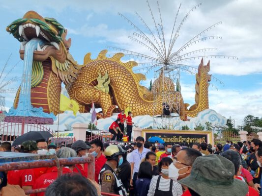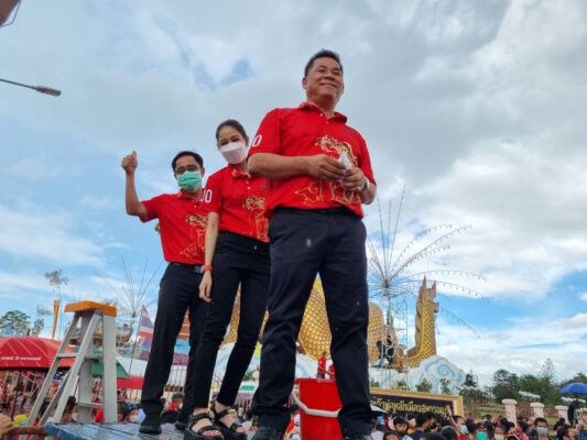 โดยนายณัฐภัทร สุวรรณประทีป ผู้ว่าราชการจังหวัดสุพรรณบุรี เป็นประธานในการแจกติ้วทิ้งทาน และ รองผู้ว่าราชการจังหวัดสุพรรณบุรี ดร.อุดม โปร่งฟ้า ดร.สุจิตรา ทรงมัจฉา ที่ปรึกษารัฐมนตรีว่าการกระทรวงทรัพยากรธรรมชาติและสิ่งแวดล้อม ร่วมแจกติ้วทิ้งทานด้วย ซึ่งจะมีการแจกทานอีกครั้งในวันที่ 26 สิงหาคม 2565 เวลา 15.00 น.