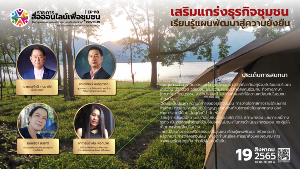 อาจารย์กิติ จารุอารยนันท์ ประธานสถาบันพัฒนาธุรกิจภูมิภาค เปิดเผยว่าสถาบันพัฒนาธุรกิจภูมิภาค โดย มูลนิธิองค์กรเครือข่ายบริการธุรกิจภูมิภาค ได้ออกแบบ และจัดทำรายการสื่อออนไลน์เพื่อชุมชนขึ้น ทุกวันศุกร์ เวลา 18.30 – 20.00 น. เพื่อให้ประชาชนทุกภาคส่วนได้รับรู้ข่าวสาร และแนวทางในการรับมือ แก้ปัญหา เพื่อการดำรงชีวิตอย่างมีความสุข และยั่งยืน โดยในวันที่ 19 สิงหาคม 2565 “เสริมแกร่งธุรกิจชุมชน เรียนรู้แผนพัฒนาสู่ความยั่งยืน” หัวข้อสนทนา – ชวนคุยการทำมาหากินของชุมชน ภูมิปัญญาชาวบ้านที่อาศัยอยู่ร่วมกันในเขตบริเวณเดียวกัน มีวิถีชีวิต วิถีชุมชน และความสัมพันธ์ทางสังคมร่วมกัน ทั้งทางภาษา (ภาษาถิ่น) วัฒนธรรม จารีตประเพณี รวมถึงทัศนคติที่มีความเหมือนกันในชุมชนเดียวกัน – เปิดประเด็นปัญหา ความท้าทายของธุรกิจชุมชน การขาดโอกาสทางรายได้และการจ้างงาน การสูญหายของภูมิปัญญา ผลิตภัณฑ์/บริการยังไม่หลากหลาย ช่องทางการขายมีน้อย วัตถุดิบมีจำกัด ฯลฯ- เรียนรู้การประเมินสถานะธุรกิจชุมชน ด้านรายได้ กำไร สภาพคล่อง และภาระหนี้ทางธุรกิจ เป็นตัวจักรสำคัญที่ช่วยให้มองเห็นปัญหาในการดำเนินธุรกิจตนเอง กระตุ้นให้เกิดการการแก้ไขปรับปรุง – แลกเปลี่ยนกิจกรรมเสริมแกร่งธุรกิจชุมชน เรียนรู้แผนพัฒนา สร้างคุณค่าผลิตภัณฑ์ การตลาดออนไลน์ การจัดทำบัญชีและการเข้าถึงแหล่งเงินทุน การวางแผนพัฒนาธุรกิจ ก้าวไปสู่ความยั่งยืน