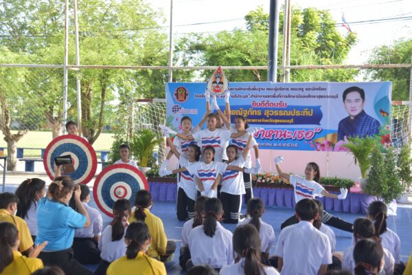 จากนั้นผู้ว่าราชการจังหวัดสุพรรณบุรีได้ให้โอวาท ขอให้นักเรียนทุกคนเห็นถึงความสำคัญของสถาบันหลัก ประกอบด้วยชาติ ศาสนา พระมหากษัตริย์ ขอให้ถือปฏิบัติศีล 5 ไม่ยุ่งเกี่ยวกับยาเสพติด โครงการเยาวชนคนดีศรีสุพรรณ และขอให้ปฏิบัติตามมาตรการป้องกันการแพร่ระบาดของโรคโควิด-19 โดยมีกิจกรรมให้เด็ก ๆ ได้ร่วมกันตอบคำถาม พร้อมแจกของรางวัลต่าง ๆ มากมาย สร้างความสนุกสนาน สอดแทรกความรู้ และฝึกความกล้าแสดงออกในสิ่งที่ถูกต้องให้แก่เด็ก ๆ สำหรับกิจกรรมผู้ว่าฯ มาหานะเธอ จัดขึ้นทุกวันศุกร์ ตามนโยบายของผู้ว่าราชการ จ.สุพรรณบุรี เป็นการพบปะเด็กนักเรียนหน้าเสาธง เพื่อปลูกฝังค่านิยมรักชาติ ศาสนา พระมหากษัตริย์ คุณธรรม จริยธรรมและแนวทางในการดำเนินชีวิตที่ถูกต้อง