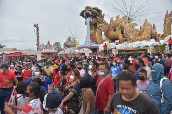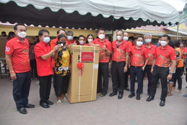 ซึ่งการทิ้งกระจาดให้ทานในครั้งนี้เป็นการให้ทานทิ้งกระจาดให้แก่ผู้ยากจนและผู้ด้อยโอกาส เสริมสร้างสิริมงคลแก่ตนเอง ซึ่งนอกจากการทิ้งติ้วให้ทานแล้ว สำหรับผู้สูงอายุ และผู้พิการ ทางคณะกรรมการศาลเจ้าพ่อหลักเมืองให้มาลงชื่อแล้วรับสิ่งของได้เลยไม่ต้องไปยืนรอรับติ้วเหมือนคนปกติ