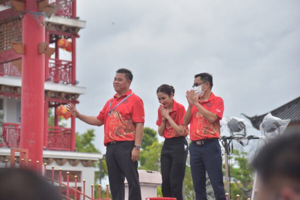โดยนายณัฐภัทร สุวรรณประทีป ผู้ว่าราชการจังหวัดสุพรรณบุรี เป็นประธานในการแจกติ้วทิ้งทาน นอกจากนี้ยังมี นายปรีชา ทองคำ นายนพฤทธิ์ ศิริโกศล รองผู้ว่าราชการจังหวัด นายศรีธรรม ราชแก้ว นายอำเภอเมืองสุพรรณบุรี ดร.อุดม โปร่งฟ้า ดร.สุจิตร ทรงมัจฉา ที่ปรึกษารัฐมนตรีว่าการกระทรวงทรัพยากรธรรมชาติและสิ่งแวดล้อม คณะกรรมการศาลเจ้าพ่อหลักเมือง ร่วมพิธีด้วย