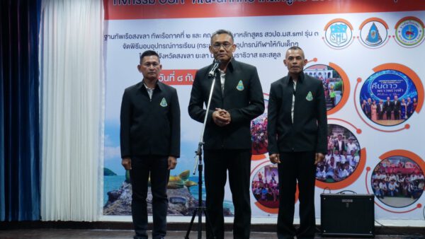 วันนี้ (8 ก.ย.65) พลเอกสิทธิพล นิ่มนวล ผู้อำนวยการหลักสูตรการบริหารความมั่นคงสำหรับผู้บริหารระดับสูง (สวปอ.มส.SML) รุ่นที่ 3 พร้อมด้วยคณะนักศึกษาฯ นำโดยนายเชาวลิต เอื้อชูยศ หัวหน้าหมู่วัว จัดกิจกรรมเพื่อสังคมโดยเดินทางไปยังสโมสรฐานทัพเรือสงขลา จ.สงขลา เพื่อมอบอุปกรณ์การศึกษาและเครื่องกีฬาให้กับนายวงศกร นุ่นชูคันธ์ รองผู้ว่าราชการจังหวัดสงขลา, นางดาเรศ จิตรัตน์ นายกเหล่ากาชาดจังหวัดสงขลา, ดร.พรศักดิ์ จินา ศึกษาธิการจังหวัดสงขลา, คณะ พสบ. จชต. 5 จังหวัดชายแดนภาคใต้ ในการเป็นตัวแทนรับมอบเพื่อดำเนินการส่งต่อไปยังโรงเรียนใน 5 จังหวัดชายแดนภาคใต้ ได้แก่ จ.สงขลา, จ.ยะลา, จ.ปัตตานี, จ.นราธิวาส และจ.สตูล