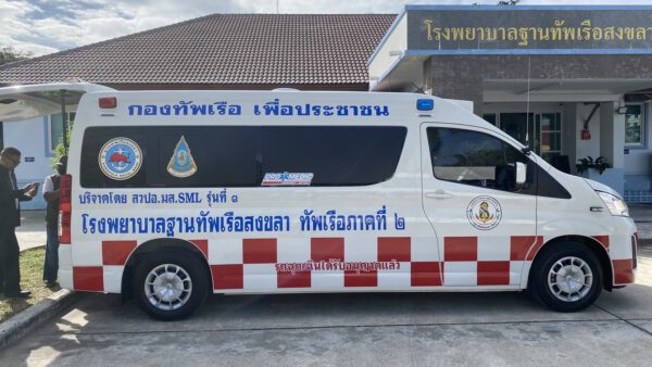 คณะนักศึกษาหลักสูตรการบริหารความมั่นคงสำหรับผู้บริหารระดับสูง(สวปอ.มส.SML) รุ่นที่ 3 นำโดย พลเอกสิทธิพล นิ่มนวล ผู้อำนวยการหลักสูตรการบริหารความมั่นคงสำหรับผู้บริหารระดับสูง สวปอ.มส.SML ได้ทำกิจกรรมเพื่อสังคมโดยมอบรถพยาบาลเคลื่อนที่ซึ่งติดตั้งอุปกรณ์สำหรับช่วยชีวิตผู้ป่วยขณะเคลื่อนย้ายเบื้องต้นและในภาวะวิกฤตให้กับโรงพยาบาลฐานทัพเรือสงขลา ทัพเรือภาคที่ 2 โดยมีพลเรือตรีกฤษฎา รัตนสุภา ผู้บังคับบัญชาฐานทัพเรือสงขลา ทัพเรือภาคที่ 2 เป็นผู้รับมอบ ซึ่งนายเชาวลิต เอื้อชูยศ และนางมุกดา ผู้สัมฤทธิ์ เป็นผู้บริจาคเงินจำนวน5,440,700 บาท และเงินสมทบทุนจากคณะนักศึกษาในหลักสูตร เพื่อจัดซื้อรถดังกล่าวรวมถึงบริจาคเงินเพื่อปรับปรุงโรงพยาบาลเพื่อให้มีความพร้อมในการให้บริการทางการแพทย์แก่กำลังพลและช่วยเหลือประชาชนในพื้นที่ได้อย่างทันท่วงที นับว่าเป็นการสนับสนุนภารกิจเพื่อสังคมของกองทัพเรือให้ขับเคลื่อนได้อย่างมีประสิทธิภาพและเป็นไปอย่างทั่วถึง