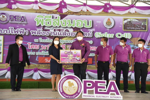 หลังจากนั้น นายภักดี เป็นประธานพิธีส่งมอบระบบไฟฟ้า พลังงานแสงอาทิตย์ ที่ศูนย์เรียนรู้โรงเรียนวัดปทุมสราวาส อ.อู่ทอง จ.สุพรรณบุรี ตามโครงการแผนพัฒนาการดำเนินงานด้านCSR เพื่อตอบสนองผู้มีส่วนได้เสีย(ชุมชน)ปี 2564 และ โครงการชุมชนปลอดภัยใช้ไฟ PEAซึ่งเป็นโครงการต่อเนื่อง 4 ปี เริ่มดำเนินการตั้งแต่ปี 2561-2564 เพื่อส่งเสริมให้ประชาชนมีการใช้ไฟฟ้าอย่างระมัดระวังถูกวิธีและปลอดภัย การมีส่วนร่วมควบคู่ไปกับการพัฒนาคุณภาพชีวิตของชุมชน สังคม เผยแพร่ความรู้ที่เป็นประโยชน์เรื่องการใช้ไฟฟ้าไปสู่ประชาชนสาธารณะ ส่งเสริมการใช้พลังงานสะอาดเป็นมิตรกับสิ่งแวดล้อม