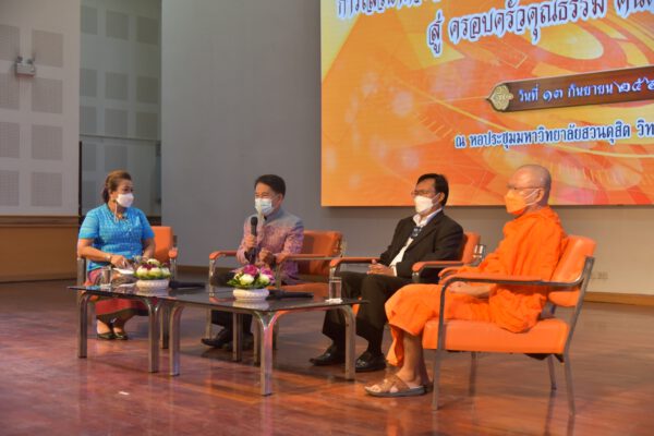 วันนี้(13 ก.ย.65) ที่ หอประชุมหาวิทยาลัยสวนดุสิต วิทยาเขตสุพรรณบุรี จังหวัดสุพรรณบุรี พระครูวิบูลเจติยานุรักษ์ เจ้าคณะจังหวัดสุพรรณบุรี ประธานฝ่ายสงฆ์ นายณัฐภัทร สุวรรณประทีป ผู้ว่าราชการจังหวัดสุพรรณบุรี ประธานฝายฆราวาส และ ดร.ชาญชัย ทิพเนตร ผู้ทรงคุณวุฒิโครงการคนดีศรีสุพรรณ ได้ร่วมแสดงทัศนะ หัวข้อ “แนวคิด มุมมอง โครงการเยาวชนคนดีศรีสุพรรณ สู่ ครอบครัวคุณธรรม คนดีศรีสุพรรณ”