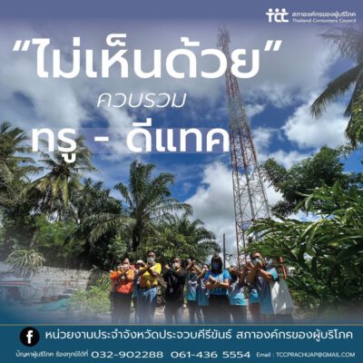 น.ส.ธนพร บางบัวงาม หัวหน้าหน่วยงานประจำจังหวัด สอบ. กล่าวว่า องค์กรในพื้นที่ทั้ง 13 องค์กร ใน 8 อำเภอของจังหวัดประจวบฯ ได้แสดงจุดยืน ร่วมคัดค้านการควบรวมทรู – ดีแทค ที่จะมีผลกระทบการผูกขาดมือถือต่อสิทธิพลเมือง 5 G เพราะการควบรวมอาจทำให้เกิดอำนาจเหนือตลาด โดยหากการควบรวมของทั้ง 2 บริษัทได้รับการอนุมัติจากหน่วยงานกำกับดูแล และสามารถตั้งบริษัทขึ้นมาใหม่ได้ กิจการภายใต้บริษัทดังกล่าว จะมีส่วนแบ่งตลาดโทรคมนาคมในประเทศไทยถึงร้อยละ 52 ส่งผลให้เกิดสภาวะขาดประสิทธิภาพในการแข่งขัน (Failure market) และอาจมีอำนาจเหนือตลาดอย่างมีนัยสำคัญ ซึ่งจะนำไปสู่การผูกขาดบริการ โครงสร้างพื้นฐาน รวมถึงการผูกขาดทางเศรษฐกิจดิจิทัล ซึ่งส่งผลต่อราคาและคุณภาพของบริการสัญญาโทรศัพท์และอินเตอร์น็ตที่ผู้บริโภคใช้ การผูกขาดบริการ หรือผูกขาดโครงสร้างพื้นฐานอินเทอร์เน็ต ทั้งแบบมีสายและแบบไร้สาย ทำให้ผู้บริโภคเข้าถึงได้ยากขึ้น อินเทอร์เน็ตจะช้าลง และผู้ใช้บริการทุกกลุ่มจะมีต้นทุนสูงขึ้น